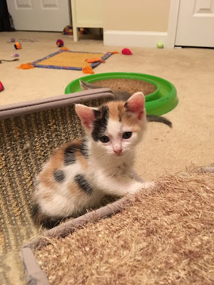 Everyone had to go to the shelter on Tuesday for vaccines and a new dewormer. We also took in a poop sample to make sure Caleb didn't have panleukapenia...negative thank goodness! The shelter has seen a lot of kittens with the deadly disease this year unfortunately. Because we were "suspect" the kittens had their exams in the parking lot! Better safe than sorry.