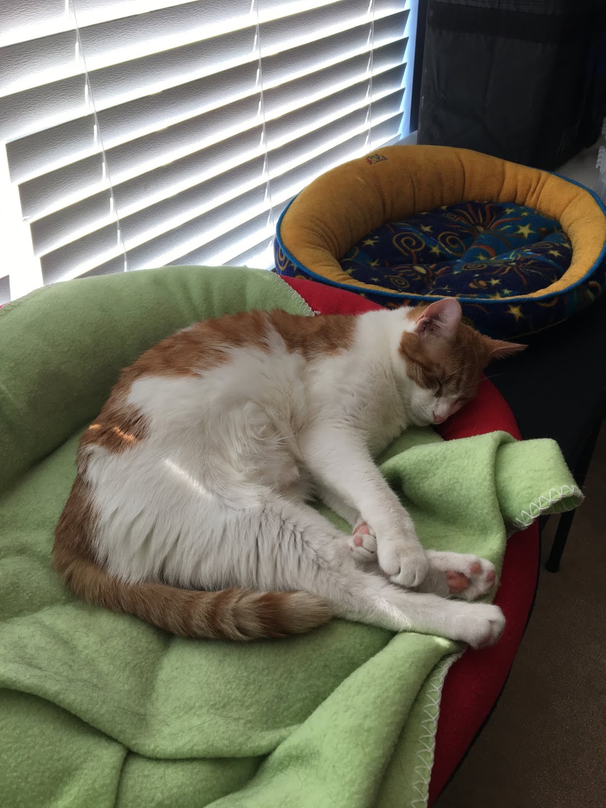 Harrison and Flynn went to the vet for their annual visits. Both are very healthy. Harrison was a sweetie and purred the whole time. Flynn was not happy and growled and hissed. I may see if I can give him a little something next year to help him calm down a touch. He wasn't able to get too thorough of an exam because he was so upset.